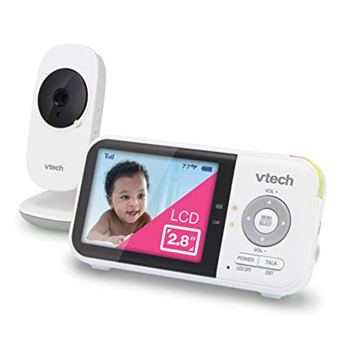 Check in on your little one with a 2.8-inch LCD screen on the VTech VM819 Digital Video Baby Monitor. Soothe your baby using the lullabies and soft sounds that play right from the baby unit. Plus, you can make sure your infant is cozy by monitoring the nursery temperature that’s displayed right on the LCD screen. Best of all, with the industry’s best battery life, you can easily monitor your baby throughout the night with up to 19 hours of video streaming on one charge.